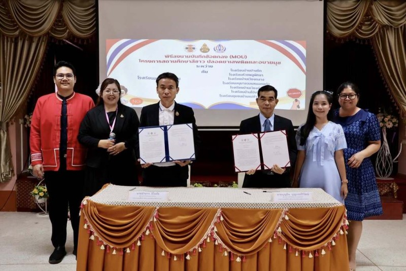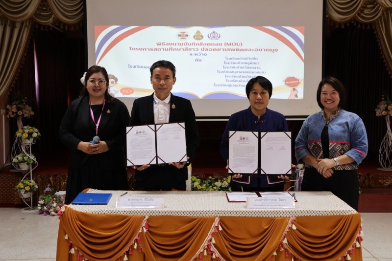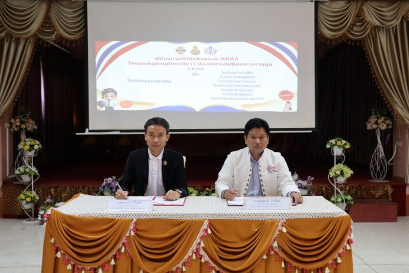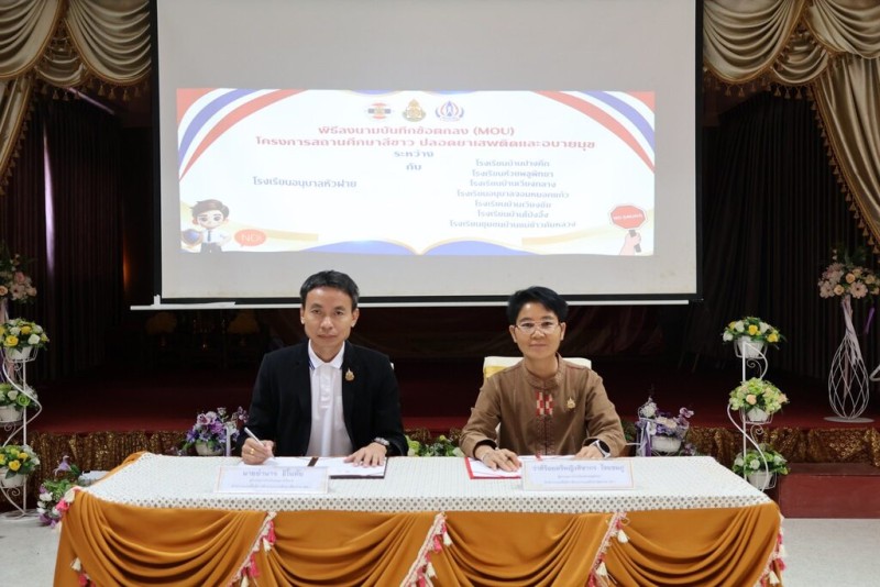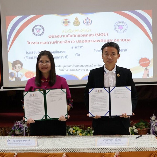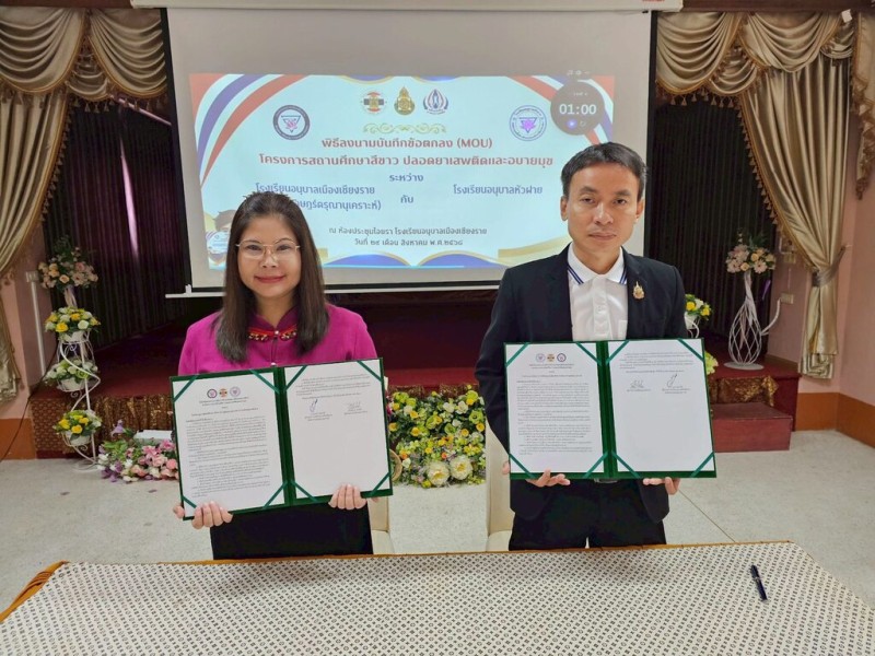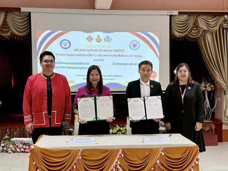 29 สิงหาคม 2568 เวลา 13.00 น. นำโดย นายอำนาจ ธิโนชัย ผู้อำนวยการโรงเรียนอนุบาลหัวฝาย พร้อมด้วย นางสาวกนกวรรณ ไชยมงคล ครูผู้รับผิดชอบ โครงการสถานศึกษาสีขาวปลอดยาเสพติดและอบายมุข ร่วมทำบันทึกข้อตกลงกับโรงเรียนเครือข่ายร่วมพัฒนา ได้แก่ โรงเรียนอนุบาลเมืองเชียงราย (สันทรายราษฎร์ดรุณานุเคราะห์) , โรงเรียนบ้านโป่งฮึ้ง , โรงเรียนอนุบาลจอมหมอกแก้ว , โรงเรียนห้วยพลูพิทยา ,โรงเรียนชุมชนบ้านแม่ข้าวต้มหลวง และ โรงเรียนบ้านปางคึก เป็นการแสดงเจตจำนงร่วมกันที่จะร่วมมือกันอย่างจริงจังเพื่อปกป้องเยาวชน ซึ่งเป็นอนาคตของชาติ ให้เติบโตเป็นคนดี คนเก่ง และมีคุณภาพ เพื่อเป็นกำลังสำคัญในการพัฒนาประเทศชาติต่อไปในอนาคต ณ ห้องประชุมไอยรา โรงเรียนอนุบาลเมืองเชียงราย (สันทรายราษฎร์ดรุณานุเคราะห์)