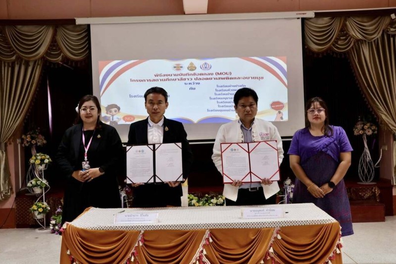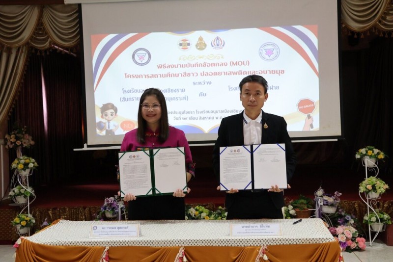 29 สิงหาคม 2568 เวลา 13.00 น. นำโดย นายอำนาจ ธิโนชัย ผู้อำนวยการโรงเรียนอนุบาลหัวฝาย พร้อมด้วย นางสาวกนกวรรณ ไชยมงคล ครูผู้รับผิดชอบ โครงการสถานศึกษาสีขาวปลอดยาเสพติดและอบายมุข ร่วมทำบันทึกข้อตกลงกับโรงเรียนเครือข่ายร่วมพัฒนา ได้แก่ โรงเรียนอนุบาลเมืองเชียงราย (สันทรายราษฎร์ดรุณานุเคราะห์) , โรงเรียนบ้านโป่งฮึ้ง , โรงเรียนอนุบาลจอมหมอกแก้ว , โรงเรียนห้วยพลูพิทยา ,โรงเรียนชุมชนบ้านแม่ข้าวต้มหลวง และ โรงเรียนบ้านปางคึก เป็นการแสดงเจตจำนงร่วมกันที่จะร่วมมือกันอย่างจริงจังเพื่อปกป้องเยาวชน ซึ่งเป็นอนาคตของชาติ ให้เติบโตเป็นคนดี คนเก่ง และมีคุณภาพ เพื่อเป็นกำลังสำคัญในการพัฒนาประเทศชาติต่อไปในอนาคต ณ ห้องประชุมไอยรา โรงเรียนอนุบาลเมืองเชียงราย (สันทรายราษฎร์ดรุณานุเคราะห์)