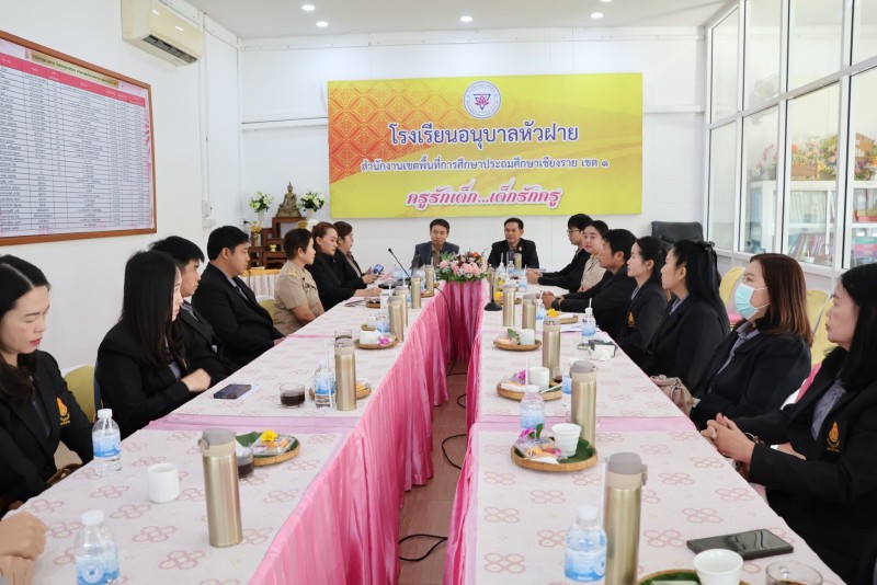 วันที่ 2 มีนาคม 2569 เวลา 09.00 น.นายอำนาจ ธิโนชัย ผู้อำนวยการโรงเรียนอนุบาลหัวฝาย พร้อมด้วยหัวหน้าฝ่ายบริหาร และนางสาวกนกวรรณ ไชยมงคล ครูผู้รับผิดชอบโครงการสถานศึกษาสีขาวปลอดยาเสพติดและอบายมุข ให้การต้อนรับผู้บริหาร คณะครู และบุคลากรโรงเรียนบ้านเกี๋ยง สำนักงานเขตพื้นที่การศึกษาประถมศึกษาเชียงราย เขต 4 ในการศึกษาดูงานการดำเนินงานโครงการสถานศึกษาสีขาวปลอดยาเสพติดและอบายมุข และร่วมแลกเปลี่ยนเรียนรู้ผลการดำเนินงานในรอบ 1 ปีการศึกษาที่ผ่านมา ณ ห้องประชุมฝายแก้ว ห้องศูนย์การเรียนรู้โครงการสถานศึกษาสีขาวปลอดยาเสพติดและอบายมุข โรงเรียนอนุบาลหัวฝาย เป็นไปด้วยความเรียบร้อย