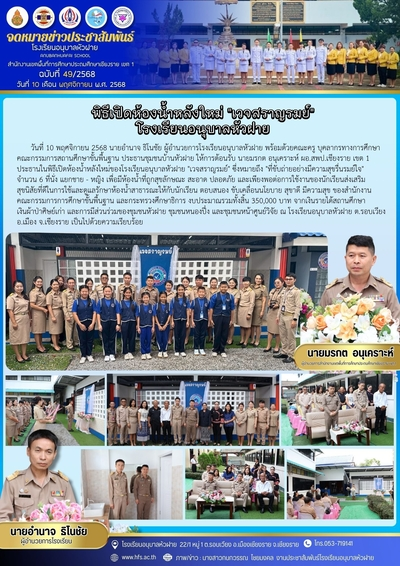 ฉบับที่ 49/2568 วันที่ 10 พ.ย. 68 พิธีเปิดห้องน้ำพลังใหม่ "เวจสราญรมย์" โรงเรียนอนุบาลหัวฝาย