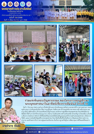 ฉบับที่ 58/2568 วันที่ 17 ธ.ค. 68 ร่วมแข่งขันตอบปัญหาธรรมะ ของโครงการศูนย์ศึกษาพระพุทธศาสนาวันอาทิตย์เชียงรายสัมพันธ์ ครั้งที่ 18