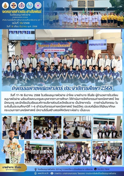 ฉบับที่ 59/2568 วันที่ 18 ธ.ค. 68 กิจกรรม "ค่ายคณิตศาสตร์" ประจำปีการศึกษาา 2568