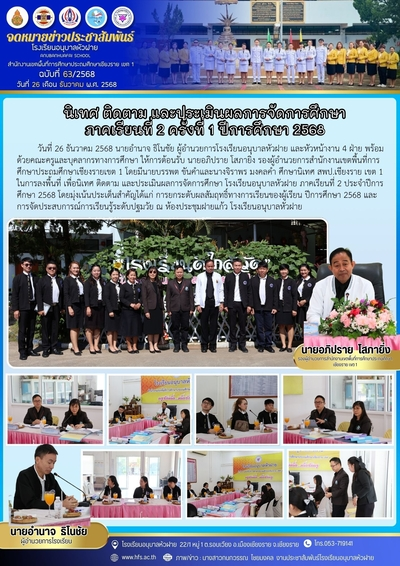ฉบับที่ 63/2568 วันที่ 26 ธ.ค. 68 นิเทศ ติดตาม และประเมินผลการจัดการศึกษา ภาคเรียนที่ 2 ครั้งที่ 1 ปีการศึกษา 2568