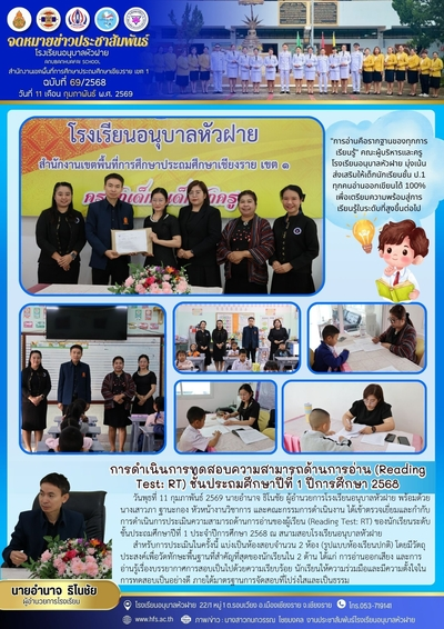 ฉบับที่ 69/2568 วันที่ 11 ก.พ. 69 ดำเนินการทดสอบความสามารถด้านการอ่าน (Reading Test : RT) ชั้น ป.1 ปีการศึกษา 2568
