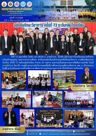 ฉบับที่ 70/2568 วันที่ 13 ก.พ. 69 แข่งขันทักษะศิลปหัตถกรรมนักเรียน ครั้งที่ 73 ระดับกลุ่มโรงเรียน