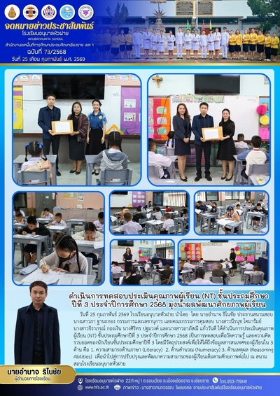 ฉบับที่ 73/2568 วันที่ 25 ก.พ. 69 ดำเนินการสอบประเมินคุณภาพผู้เรียน (NT) ชั้น ป.3 ปีการศึกษา 2568
